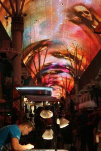 Anh Lộ, một người Việt sống gần 30 năm ở Mỹ dẫn chúng tôi đi từ khách sạn Luxor, qua Vegas Strip, xuống khu phố cũ. Gia đình anh sống ở San Jose nhưng quen thuộc với khu vực này. Lúc còn trẻ chắc vợ chồng anh hay xuống đây chơi. Lúc có con cái thì dẫn con cái đi chơi. Con út của hai anh chị năm nay học lớp 12, cao ráo xinh xắn, nói tiếng Việt đủ giỏi để thi thoảng đi dạy tiếng Việt. Hai anh chị thuộc lòng khu Strip và rất thích khu phố cũ. Khu phố của những năm 80.