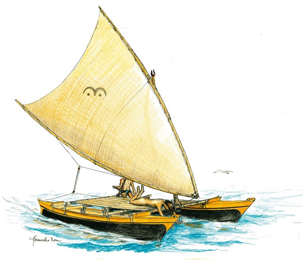 Dân Dâu Keo (Luy Lâu) từ sớm đã giao tiếp với dân đi biển gốc Nam Đảo và do đó quen thuộc với các tàu buồm hai đáy (hai thân, hai lòng, lưỡng phúc – twin hulled). Loại thuyền này rất quen thuộc với dân đi biển khắp các đảo Thái Bình Dương, mà ở gần ta nhất là vùng Nam Đảo.